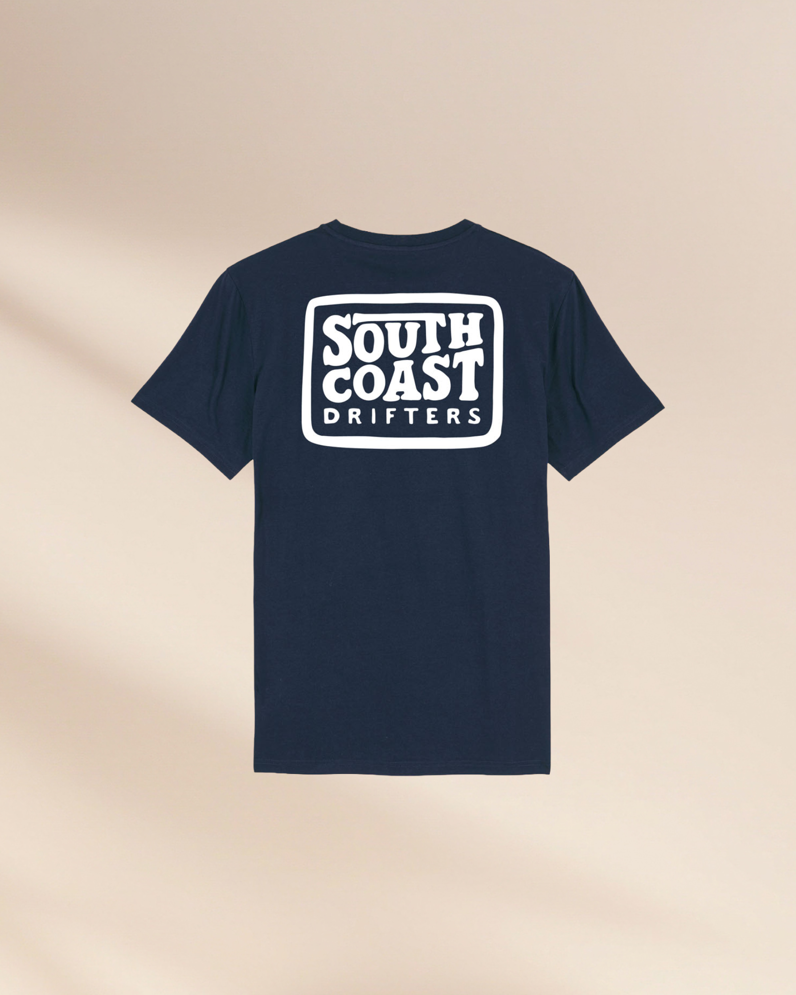 Big Drifter French Navy blue T-Shirt Skater in navy blue tee with bold South Coast Drifters logo. Man seated viewing sunset in navy South Coast Drifters tee. Man seated viewing sunset in navy South Coast Drifters tee. Man in French navy tee pondering by the sea at sunset. Skater in navy blue tee with bold South Coast Drifters logo. Man in French navy tee pondering by the sea at sunset.